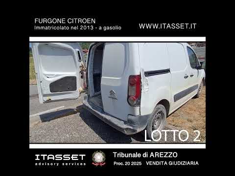 AUTOCARRO/FURGONE CITROEN targa EM 040 HH • Colore: bianco • Immatricolazione: marzo 2013 • Motore: gasolio • Portata: 616 kg • Potenza: 66 kW • Cilindrata: 1560 c.c. • Chilometraggio: 559.000 km circa da tachigrafo • Dotazioni: una chiave, libretto di circolazione, mancante di cdp sito in Via G. la Pira – Loro Ciuffenna (Ar)- i beni oggetto della vendita potranno essere visionati previa richiesta email o chiamando ai numeri indicati, esclusivamente nella data di VENERDI’ 14 NOVEMBRE 2025, dalle ore 9:30 alle ore 11:00